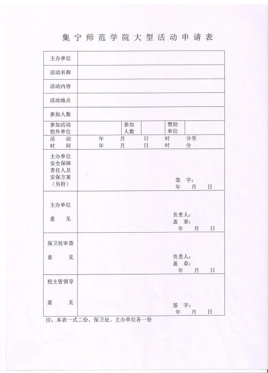五、各部门、各学院在校内举办大型活动,举办方应在五个工作日内向保卫处申报,并填写《beat365正版唯一官方网站大型活动申请表》,由校保卫处审核,再报分管校领导审批同意后,方可举办。