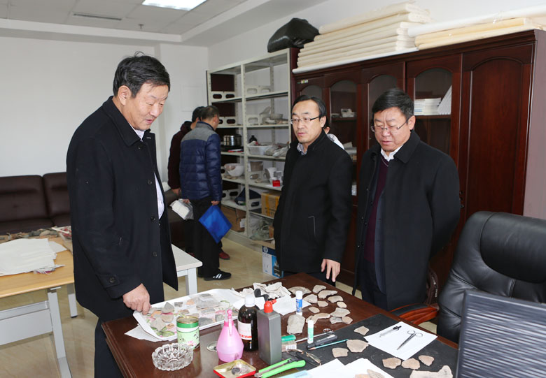 张利平一行先后考察了红山文化研究院、赤峰学院图书馆、红山文化暨契丹辽文化研究基地和赤峰市博物馆。赤峰学院党委副书记、纪委书记、红山文化研究院首席专家于建设,红山文化研究院院长滕海键,历史文化学院院长、红山文化暨契丹辽文化研究基地首席专家、常务副主任任爱君,历史文化学院副院长、红山文化研究院研究员孙永刚等陪同考察。