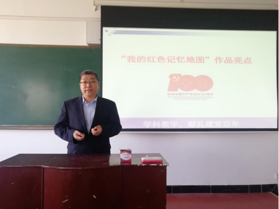 课后姚处长进行了现场点评,对以“党史”为题材绘制专题地图的教学形式,给予了肯定。姚处长说专业课程是课程思政建设的基本载体,每位任课教师要深入梳理专业课教学内容,结合不同课程特点、思维方法和价值理念,深入挖掘课程思政元素,有机融入课程教学,达到润物无声的育人效果。