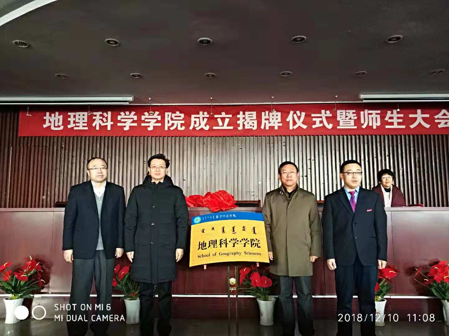 2018年12月10日上午,地理科学学院在图书馆报告厅举行成立暨揭牌仪式,召开地理科学学院第一次师生大会。beat365正版唯一官方网站党委副书记、校长朱玉东,党委副书记、纪委书记张利平,党委委员、副校长梁政,党委委员、组织部部长朱俊仙出席揭牌仪式。