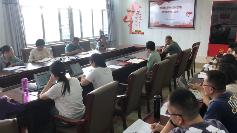 9月14日下午,地理科学与规划学院在主教楼603会议室召开2023年度秋季学期第3次教学工作会议,学院全体教职工参加会议,会议由副院长暴向平主持。