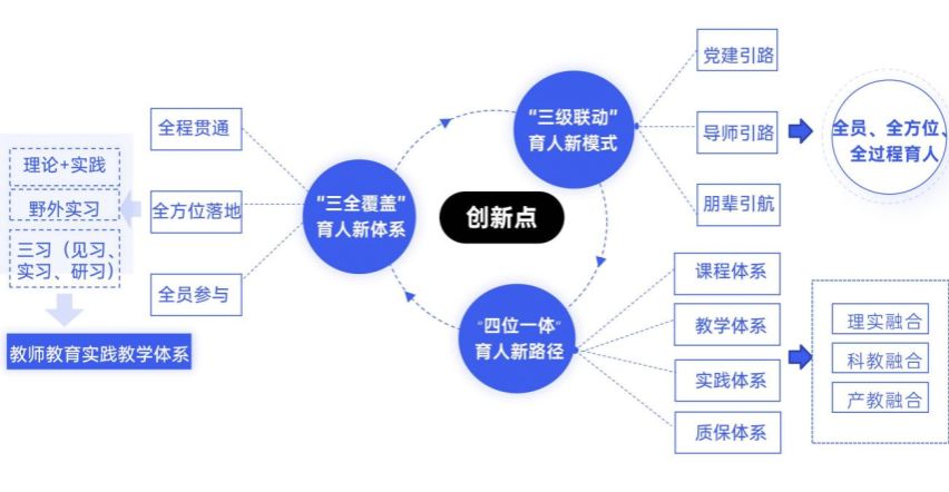 地理科学专业面向岗位需求制定教育实践课程目标,构建“三维(基础认知性、专业应用性、综合创新性)三习(见习、实习、研习)”教师教育实践教学体系。实施“导师引路、朋辈引航”的“三习”实践模式。充分利用高校和中学在师范生培养中各自的独特优势,形成了“高校—校内导师—师范生、中学—中学导师—师范生”双线联动机制,共同参与学生的培养。