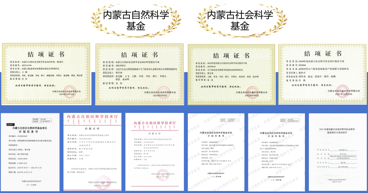 内蒙古自治区高等学校科学研究项目 | 8 | 市厅级 |