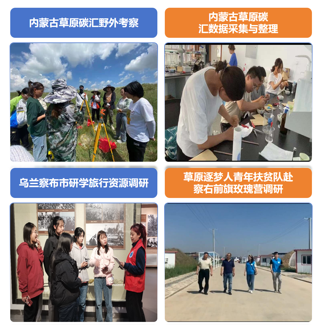 人文地理与城乡规划专业结合课程内容制定野外实习计划,进一步提高学生专业基本技能与综合实践能力。结合人才培养方案积极组织学生开展乌兰察布市及周边地区野外实习,依托乌兰察布市地理空间大数据应用与环境监测重点实验室,围绕乌兰察布市及周边地区开展调研,掌握了野外自然地理和人文地理调查研究的基本方法。通过不同专业课程的实践安排,学生既充分了解区域地理特征,又有效提升了地理学科素养。近三年,以野外实习为基础,依托志愿服务和社会实践,在暑期“三下乡”社会实践活动和寒假社会实践活动中,累计个人项目1052个,团队项目37个。其中内蒙古草原碳汇野外考察实践团在全区“三下乡”暑期社会实践活动中被评为优秀志愿服务队。
