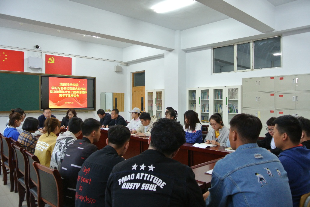 为继承和发扬爱国主义传统,弘扬“五四”精神,贯彻落实校党委书记刘前贵在学习习近平总书记在纪念五四运动100周年大会上的讲话精神专题座谈会上的有关部署和要求,进一步振奋学生朝气蓬勃的精神状态,凝练青年教师开拓进取、积极有为的工作作风,5月6日,beat365正版唯一官方网站地理科学学院党总支组织召开了“学习习近平总书记在纪念五四运动100周年大会上的讲话精神”青年师生座谈会。座谈会由学院党总支副书记张强主持,分管团学工作的黄倩、赵娜、康肇华、赵志雄等青年教师以及学院学生干部、学生代表等30余名青年学生参加了座谈会。
