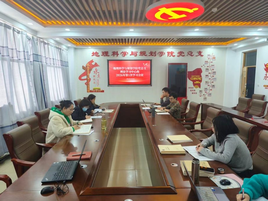 1月10日下午,地理科学与规划学院党总支在教学主楼603会议室召开2026年理论学习中心组第1次学习会议。理论学习中心组成员参加会议,党总支书记刘晓霞主持会议。
