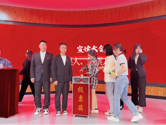 大会第四项,大会通过监票人、计票人名单。监票人:吴阳阳、郁卓霖,计票人:马琼、韩嘉续。