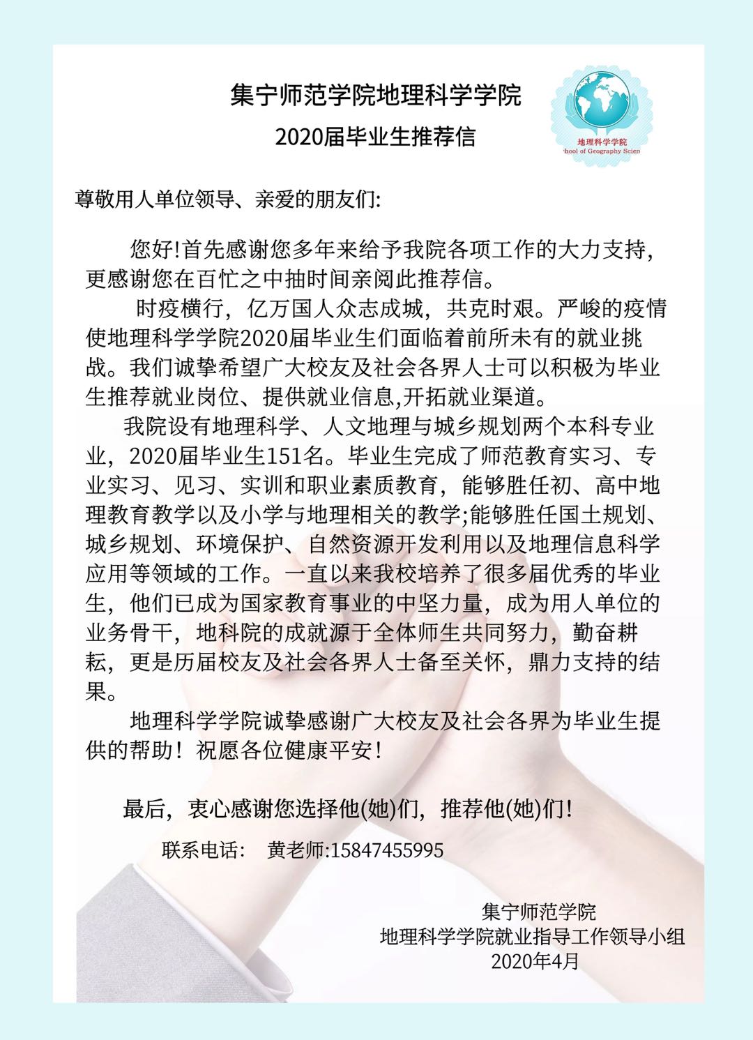 beat365正版唯一官方网站地理科学学院2020届毕业生推荐信