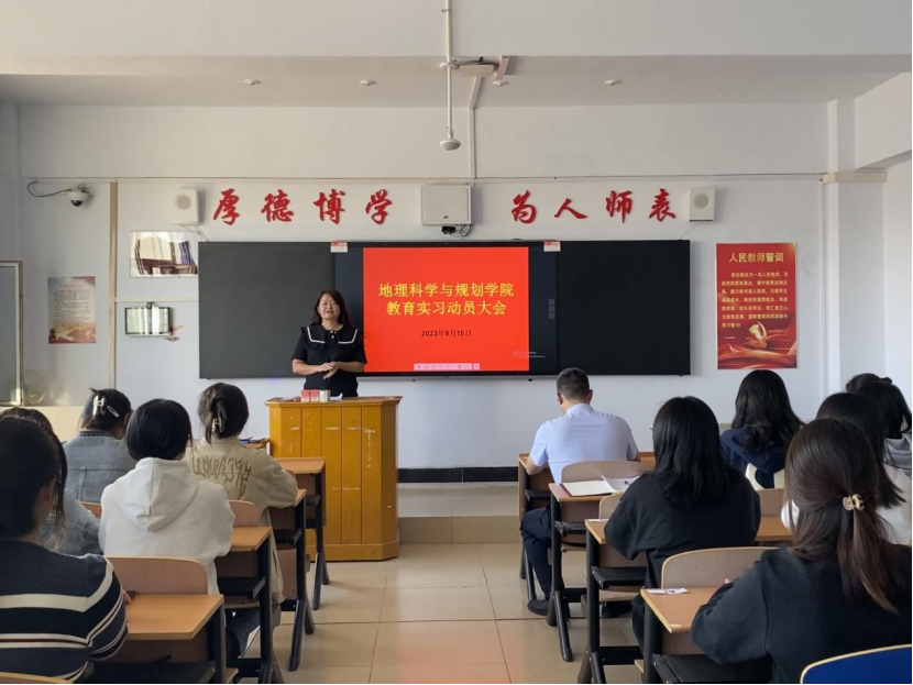 为全面贯彻党的教育方针,落实立德树人根本任务,培养德智体美劳全面发展的社会主义建设者和接班人,进一步提高师范生的专业教学能力,引导师范生进一步明确实习的内容和要求,推进实习工作顺利开展,9月18日下午,地理科学与规划学院在主教楼Z612教室召开2020级师范生教育实习动员大会,会议由2020级地理科学1班班主任邢晓彬主持,2020级全体师范生参加此次会议,联系班级领导计划财务处处长王飞、学院副院长刘彩凤出席本次会议。