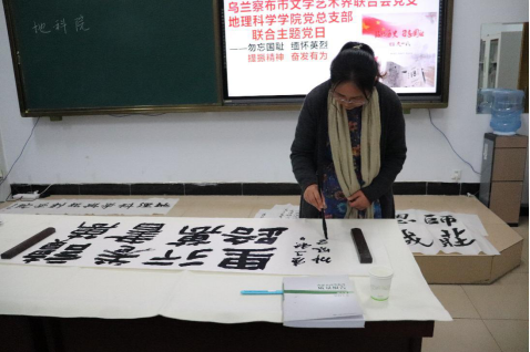 活动邀请中书协会员、自治区书协副主席、乌兰察布市书法家协会主席梁能伟作专题讲座。乌兰察布市书法家协会副主席全翀凤女士、中书协会员李文彪先生以及beat365正版唯一官方网站资深老教师现场示范、指导学生书法创作。地理科学学院部分教师和百余名学生参加活动。