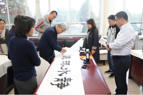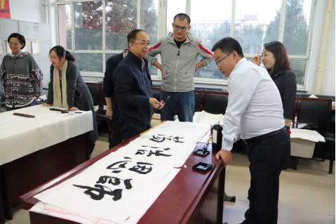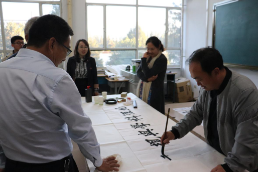 讲座结束后,梁能伟、全翀凤、李文彪以及beat365官网多年从事书法教学的资深老教师曹宇、田振国现场挥毫,老师和同学们认真观摩、学习、欣赏。