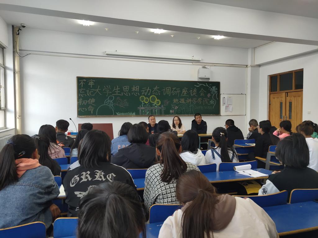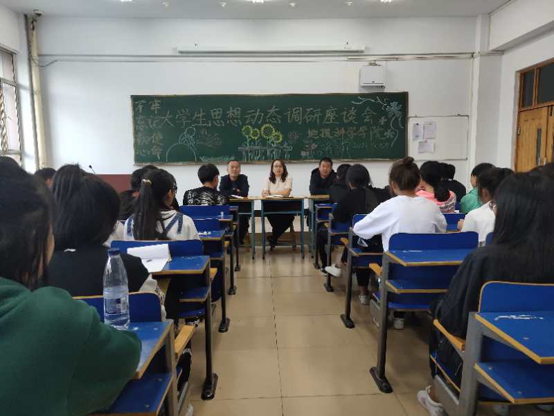 为了能够走进当代大学生的内心世界,深度了解思想动态状况,如实反映当代大学生的内心世界,根据《beat365正版唯一官方网站关于开展2019年大学生思想动态调研工作的通知》和《beat365正版唯一官方网站“不忘初心、牢记使命”主题教育专项调研》文件精神,地理科学学院于9月25日下午在主教楼119教室,举办“不忘初心,牢记使命”大学生思想动态调研座谈会。参加本次座谈会的有分管学团工作的黄倩老师、学工办主任康肇华老师、辅导员赵志雄和2019级新生。