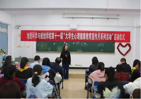 启动仪式上,地理科学与规划学院党总支副书记张强传达了《beat365正版唯一官方网站关于开展第十一届“大学生心理健康教育宣传月系列活动”的通知》文件精神。他强调,深入开展心理健康教育活动,不仅增强学生的自我心理保健意识,养成正确的心理健康观念,更能培养学生健全的心理素质,