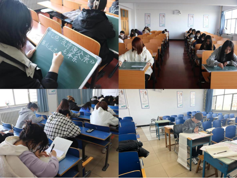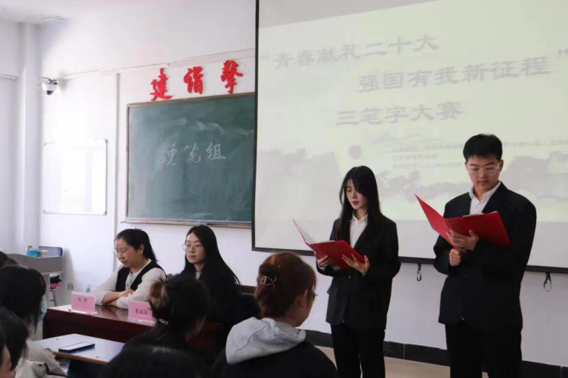 为贯彻落实教育部关于强化师范生“三笔字”教学基本功训练要求,提高学生的师范技能和专业素养,丰富大学生校园文化生活,营造浓厚的校园文化氛围,4月6日,地理科学与规划学院举办“青春献礼二十大,强国有我新征程”三笔字技能大赛。团学办副主任赵娜老师、三笔字兴趣小组负责人李瑞英老师、学生候靖敏、李雪静、李美琪五人担任评委,152名学生参加此次三笔字技能大赛。