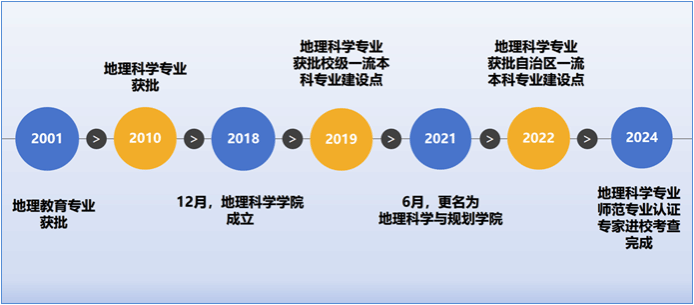 地理科学专业源于集宁师范高等专科学校2001年创办的地理教育(专科)专业,2010年升格为地理科学专业,并招收全日制本科生,学制四年,学生毕业授予理学学士学位。2018年12月,地理科学(本科)专业师生从政法与历史文化学院划转到地理科学与规划学院。2019年地理科学专业被评为beat365正版唯一官方网站校级一流本科专业建设点,2022年获批自治区级一流专业建设点,2024年地理科学专业师范专业认证专家进校考查完成。截止2025年4月,本专业在校生总数为201人。