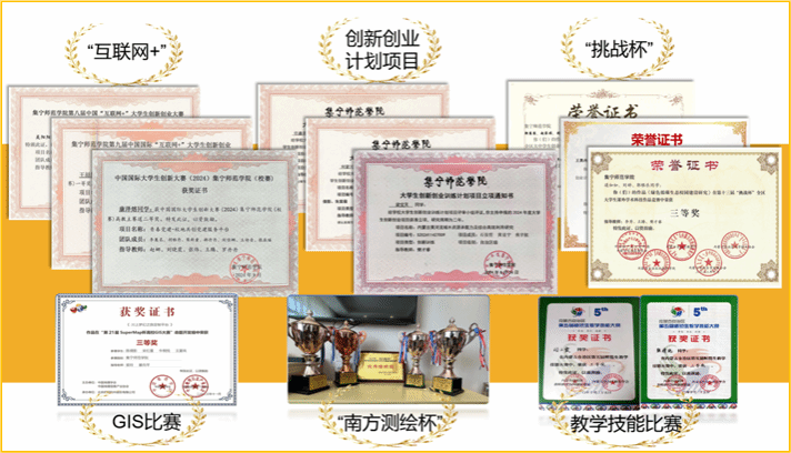 地理科学专业注重学生实践能力的培养,现已与乌兰察布实验中学、集宁五中等10余中学等建立了良好的合作关系,为地理科学专业实习奠定了良好基础。学院注重学生创新能力的培养。近五年,大学生创新创业训练项目24项,其中国家级3项,自治区级14项,校级7项;互联网+大赛19项,其中自治区级2项,校级17项;挑战杯26项,自治区级14项,校级12项;教学技能竞赛5项,其中国家级3项,自治区级2项;GIS应用技能大赛2项,其中国家级2项。学院一次性就业率均在90%以上,连年被评为校毕业生就业工作先进集体,充分展现了实践育人的显著成效。