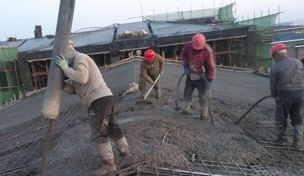 (2) 4月28日浇筑北段六层梁、板、柱混凝土。