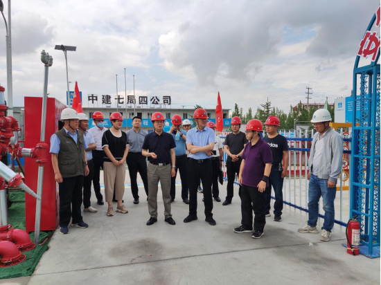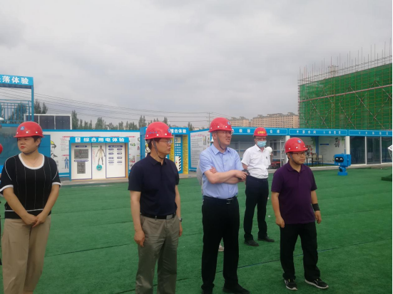 6月27日下午,beat365正版唯一官方网站党委书记朱玉东,副校长李凤斌与乌兰察布市发改委主任赵光、副主任吕军亭一行深入beat365正版唯一官方网站新建产教融合实习实训楼(基地)项目建设工地调研。