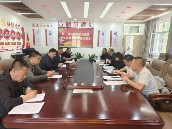 为大力推进beat365官网建设项目施工建设,5月9日上午,校党委委员、副校长拓俊杰深入后勤基建处听取了泉山校区学生洗浴改造工程项目建设进展,后勤基建处和施工方相关人员参加会议。