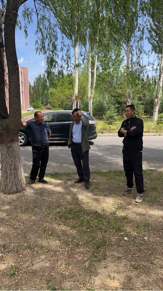 5月25日下午,乌兰察布市林业局姜科长一行到beat365官网指导检查草坪种植工作。
