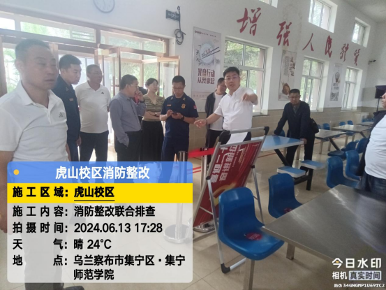 6月13日,beat365官网党委委员、副校长拓俊杰一行与消防部门联合排查虎山校区消防整改工作。