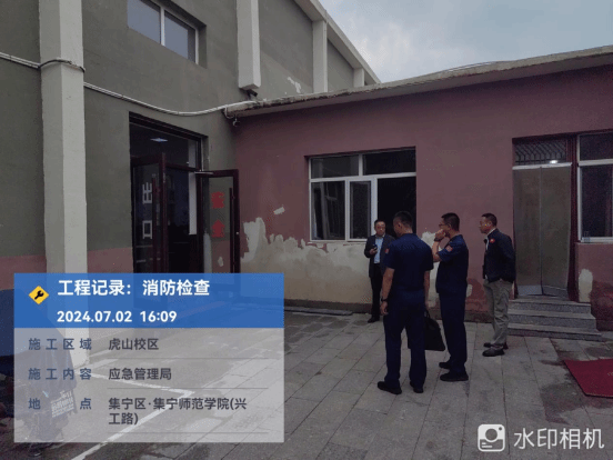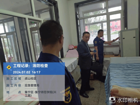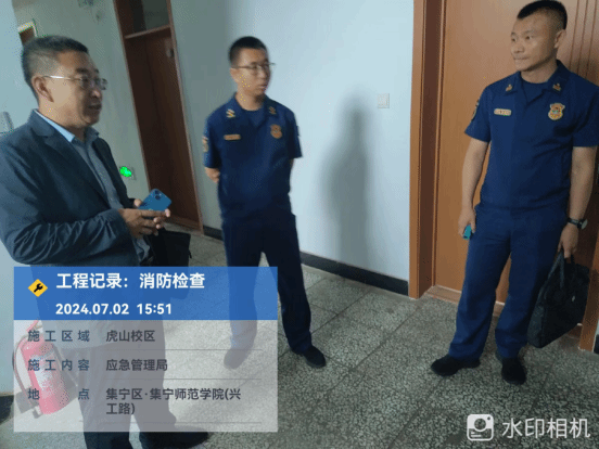7月2日下午,乌兰察布市消防支队深入beat365正版唯一官方网站虎山校区检查消防设施,后勤基建处相关工作人员陪同。