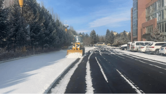 清晨,天刚蒙蒙亮,后勤基建处的工作人员们便全员到岗,顶着凛冽的寒风,奔赴各自负责的区域,开始了清雪作业。工作人员们分工明确,配合默契。有的挥动铁锹,铲除积雪;有的拿着扫帚,清扫残留的雪渣;还有的驾驶着清雪车辆,对主干道和重点区域的积雪进行集中清运。尽管室外温度极低,大家的脸和手都被冻得通红,但这丝毫没有影响他们的工作热情。在整个清雪过程中,大家齐心协力,干劲十足,经过连续数小时的奋战,校园内的主要道路、教学楼、宿舍楼和食堂周边的积雪被清理得干干净净,为师生们开辟出了一条条安全通道。