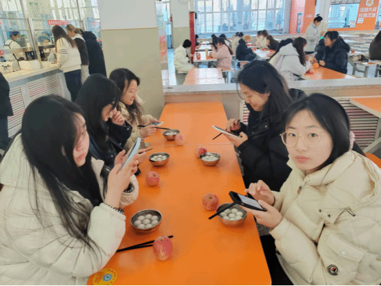 活动当天,晚餐高峰时段,餐饮服务中心在各师生餐厅窗口同步派送热气腾腾的汤圆和寓意“平平安安”的苹果。工作人员提前备足食材,严格把控食品安全与烹饪环节,确保每份汤圆软糯香甜、暖心暖胃。同学们有序排队领取,手中捧着汤圆与苹果,脸上洋溢着幸福笑容。