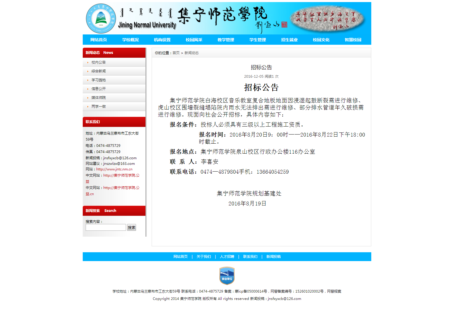 招标公告-beat365正版唯一官方网站白海校区音乐教室地面、虎山围墙、家属区排水管道