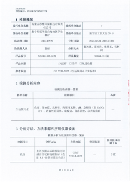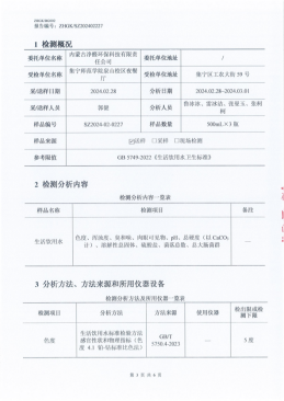 1.检测内容:包括但不限于水的感官性状、一般化学指标、毒理学指标、细菌学指标和放射性指标等。