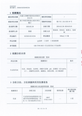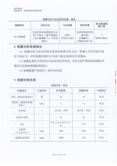 2.检测标准:依据国家生活饮用水卫生标准和地方相关规定执行,确保饮用水各项指标符合卫生要求。