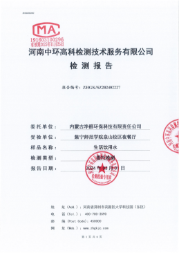 1.检测周期:根据校园实际用水情况和水源特点,一般情况下,每学期至少进行一次检测。