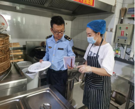 虎山中队张志军队长带队先后到学校餐厅、超市、冷饮店、水果店等对进货流程、索证索票、食品安全、餐厨货物摆放、环境卫生、消防等情况进行了认真全面地检查,并就检查中发现的问题提出整改意见。