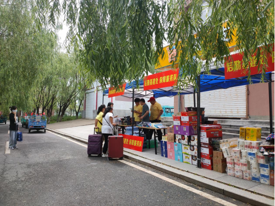 为了保证校园内生活物资供给,安全质量。在校党委统一安排下,后勤基建处设立党员先锋岗,在两个校区内同时设“临时超市”,保障学生购物秩序,确保师生买得舒心,用得放心。提升综合服务水平,全力保障物资供给。