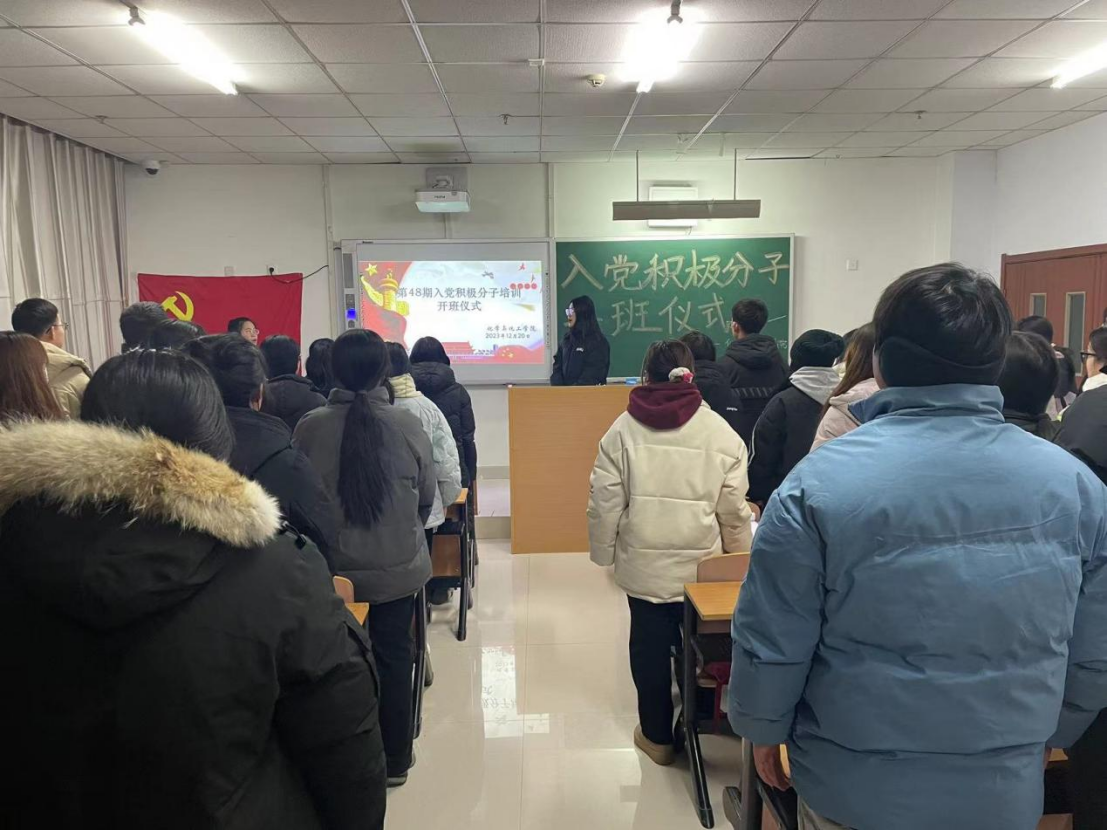 为了进一步提升党员发展质量,加深对党的认识,端正学生入党动机,坚定入党决心。2023年12月20日晚,我院在逸夫楼103教室举行第48期入党积极分子培训班开班仪式。学院学生党支部书记周丹老师及全体第48期入党积极分子参加了开班仪式。开班仪式由支部干事张越主持。