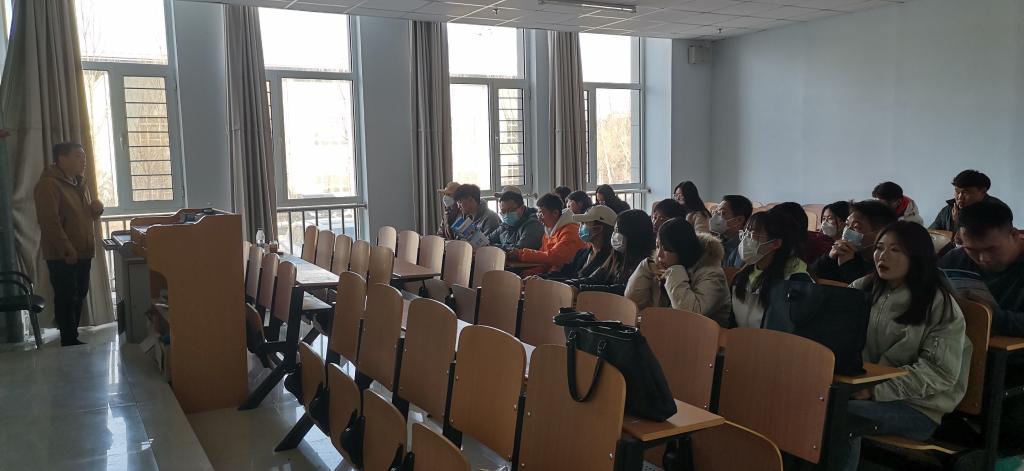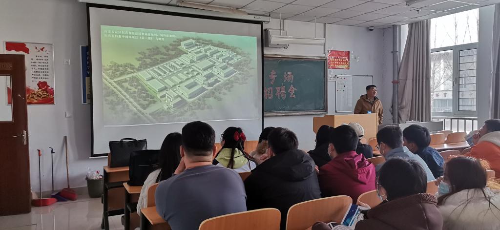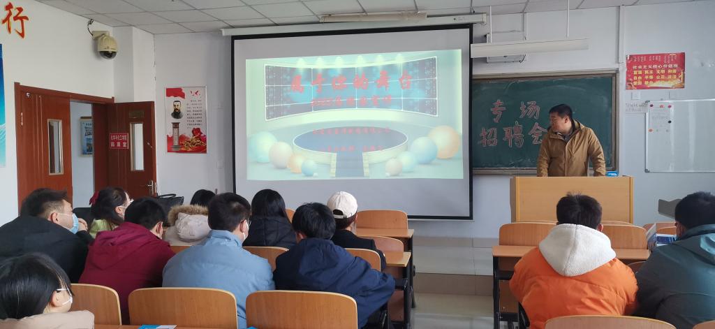3月14日上午,在逸夫楼104教室为2023届毕业生举办了专场招聘会,学院党总支副书记侯秀峰参加,内蒙古益泽制药有限公司人事行政部高鹏飞进行了宣讲活动。