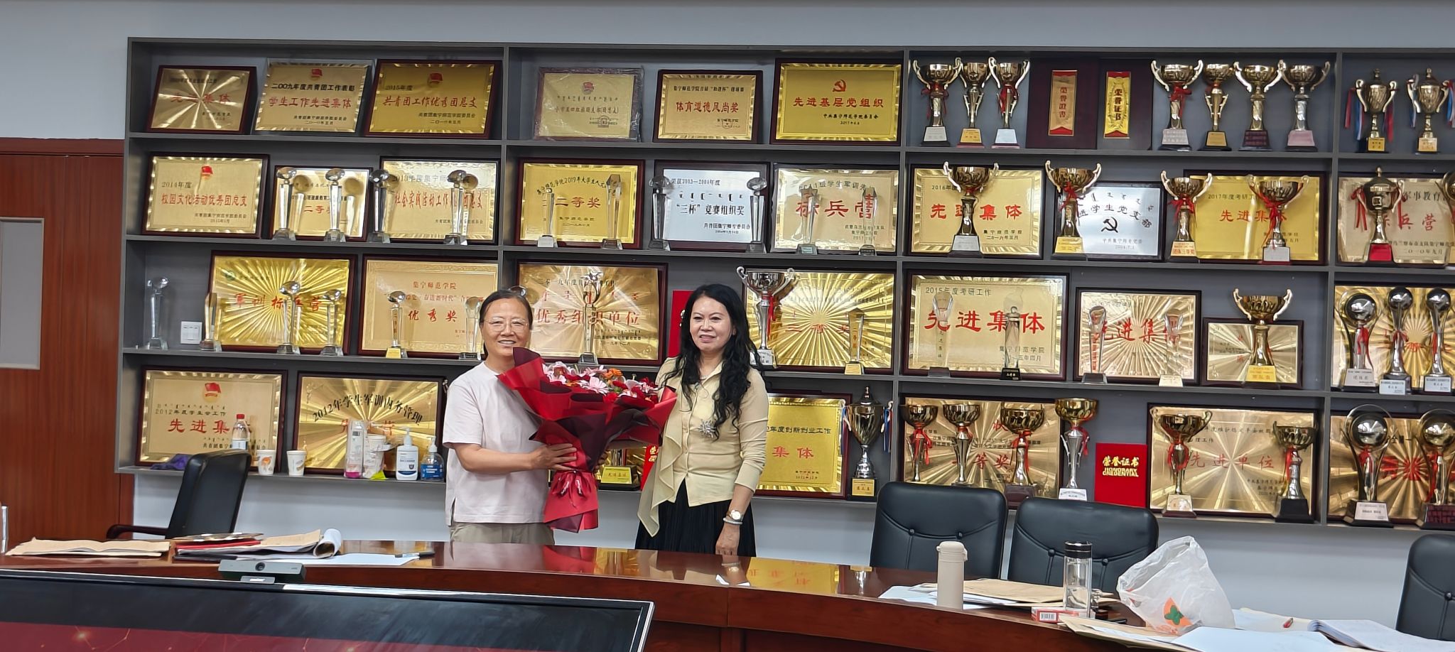 学院党总支书记赵有军代表学院向王凤英老师送上祝福,祝愿王老师身体健康、心情愉悦,继续关心和支持学院的发展。同时强调,我们要向老教师学习,为学院发展贡献力量。
