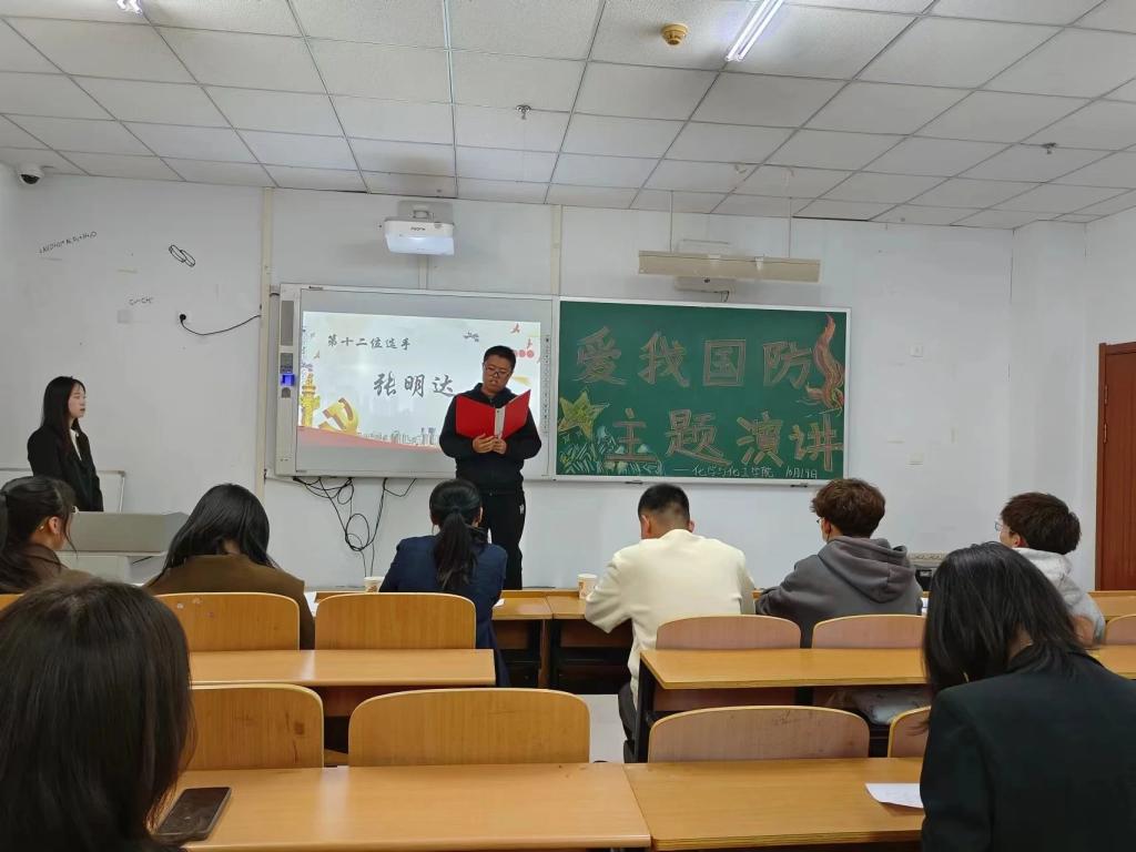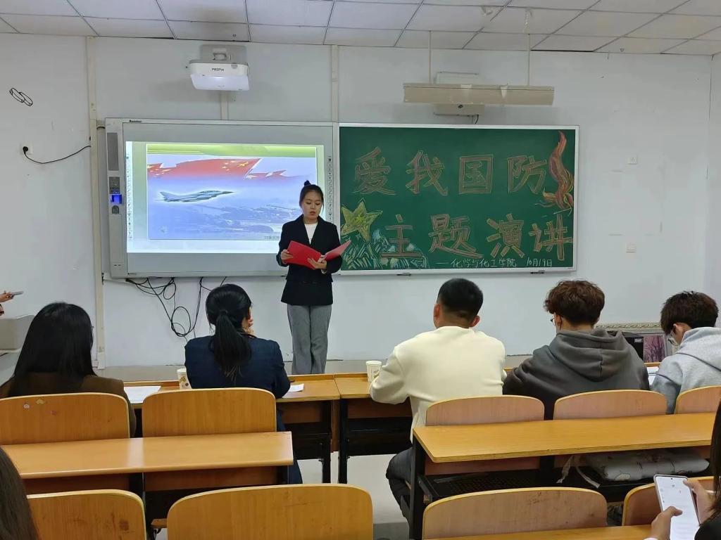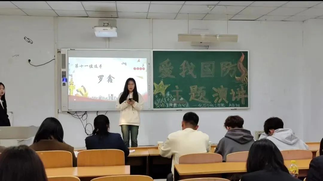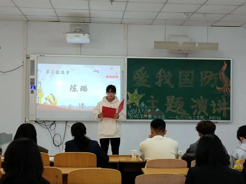 为进一步做好国防教育工作,激发学生热爱人民军队、矢志强国强军的政治热情,使关心国防、热爱国防、建设国防、保卫国防成为青年学生的思想共识和自觉行动,化学与化工学院于10月19日15:00,在逸夫楼103开展了“爱我国防”演讲比赛。比赛现场,参赛同学们用声情并茂的演讲,再现了国防故事中蕴含的精神力量,发人深省,情感真挚动人。
