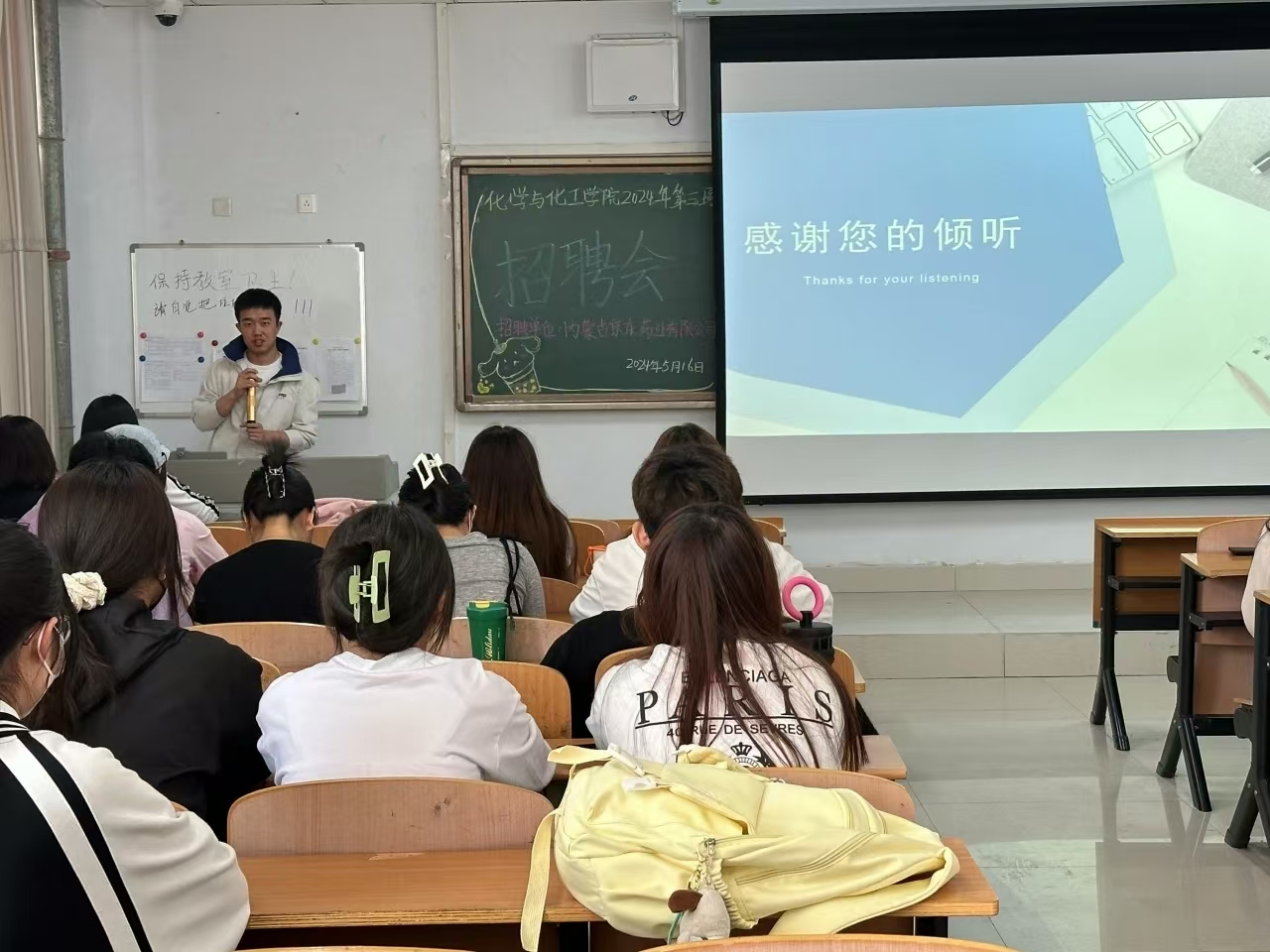 为深入贯彻国家关于高校毕业生就业工作的决策部署,搭建毕业生与用人单位双向选择的桥梁,促进2024届毕业生更加充分更高质量就业,化学与化工学院于2024年5月16日下午3点在逸夫楼105举办2024年第四场招聘会。学院党总支副书记李强、辅导员周丹出席活动。