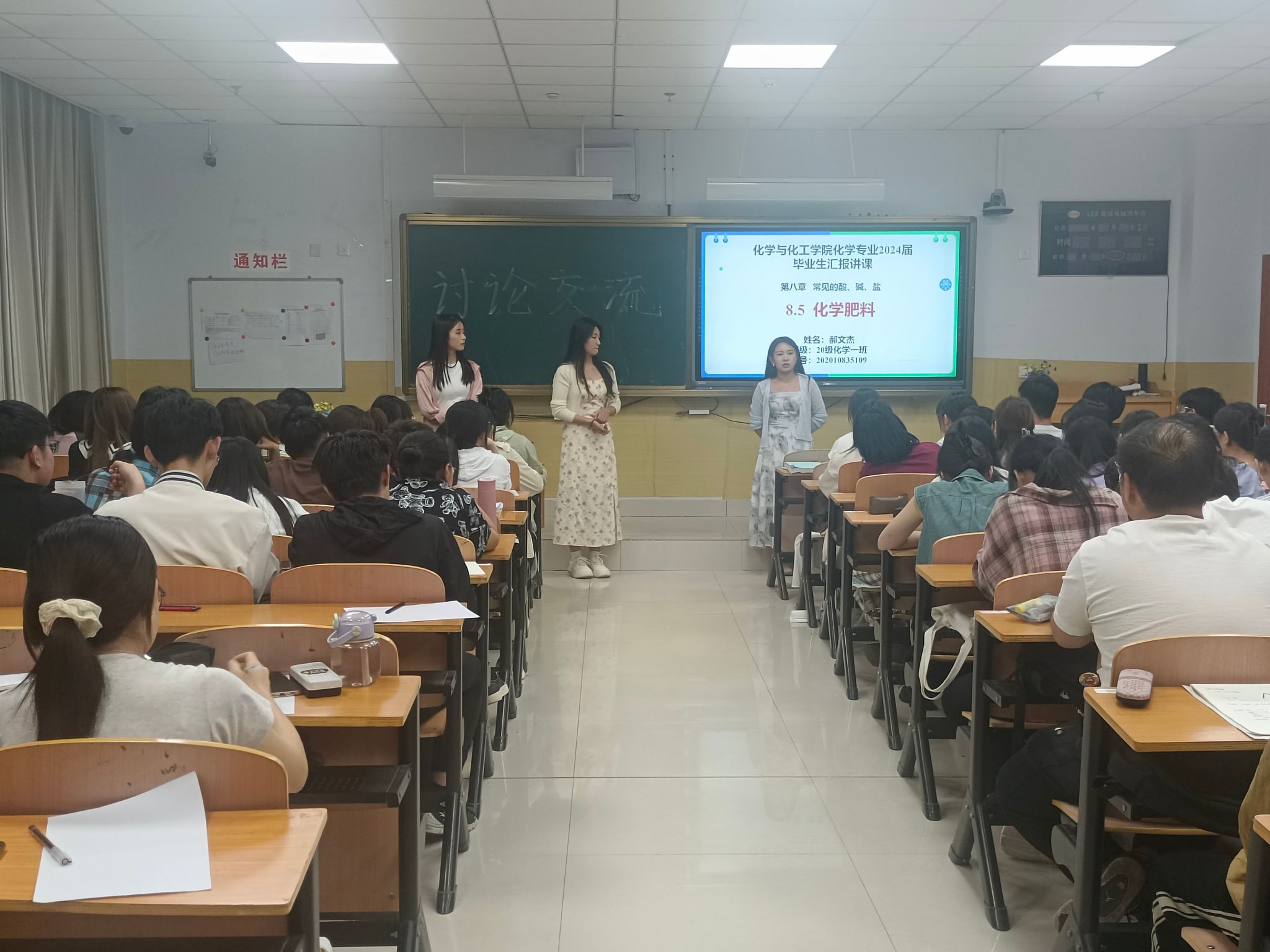 为提高师范生培养质量,检验教育实习效果。2024620晚上19:20,化学与化工学院在逸夫楼102教室举行2024届化学专业优秀实习生实习汇报讲课活动。2020级化学专业在实习过程中表现优秀的位学生代表崔春旭刘珺静和郝文杰2021级化学专业全体学生进行了汇报讲课。