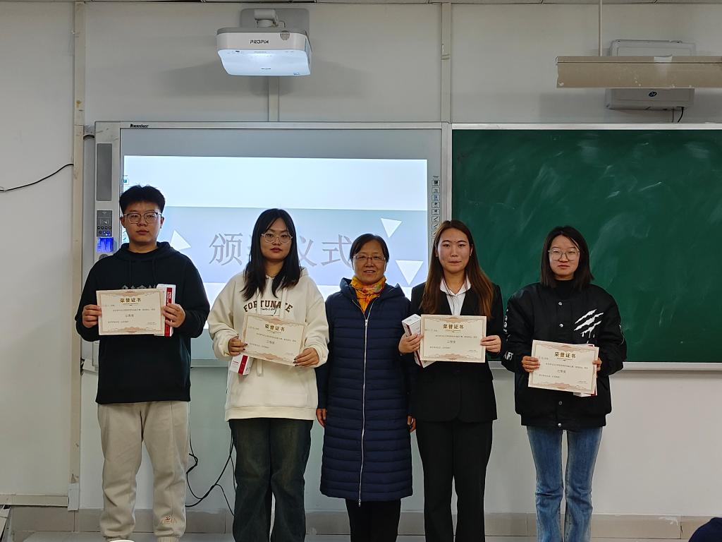 比赛最后,学院老师为参加本次师范生教学技能大赛获奖学生颁发证书并合影留念。