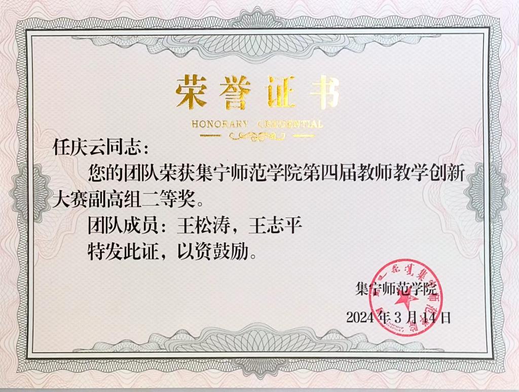 任庆云老师团队获beat365正版唯一官方网站第四届教师教学创新大赛副高组二等奖
