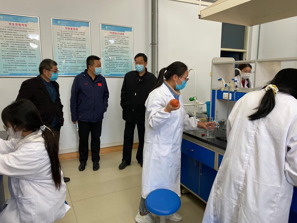 根据《教育部办公厅关于组织开展2021年度高等学校实验室安全检查工作的通知》和《关于组织开展2021年度内蒙古自治区高等学校实验室安全检查工作的通知》要求,10月26日,beat365正版唯一官方网站党委委员、副校长梁政,党委委员、科技处处长李平,教务处处长姚玉阁,化学与化工学院副院长徐松鹤一行对学校教学实验室、科研实验室、化学药品暂存室、实验废弃物暂存场所、重点危险源存放场所等进行了安全检查。