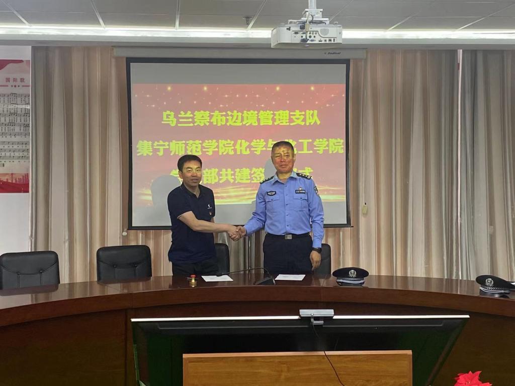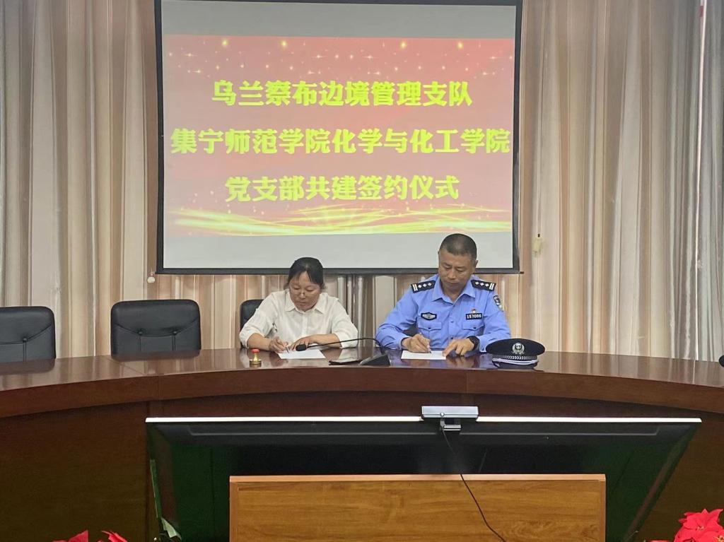 双方商讨在神舟飞船落地点建设爱国教育基地和两单位间的党建共建基地建设事宜,化学与化工学院教师党支部和学生党支部分别与乌兰察布市边境管理支队办公室支部签署了共建协议。