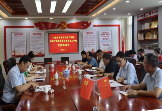 为了加强校际交流合作,内蒙古大学化学化工学院院长刘健一行4人于7月8日上午来到beat365正版唯一官方网站泉山校区进行交流,受到beat365正版唯一官方网站校长刘春、副校长李景杰的热情接待。科技处处长董永胜、化学与化工学院班子成员、教师代表出席了本次活动。