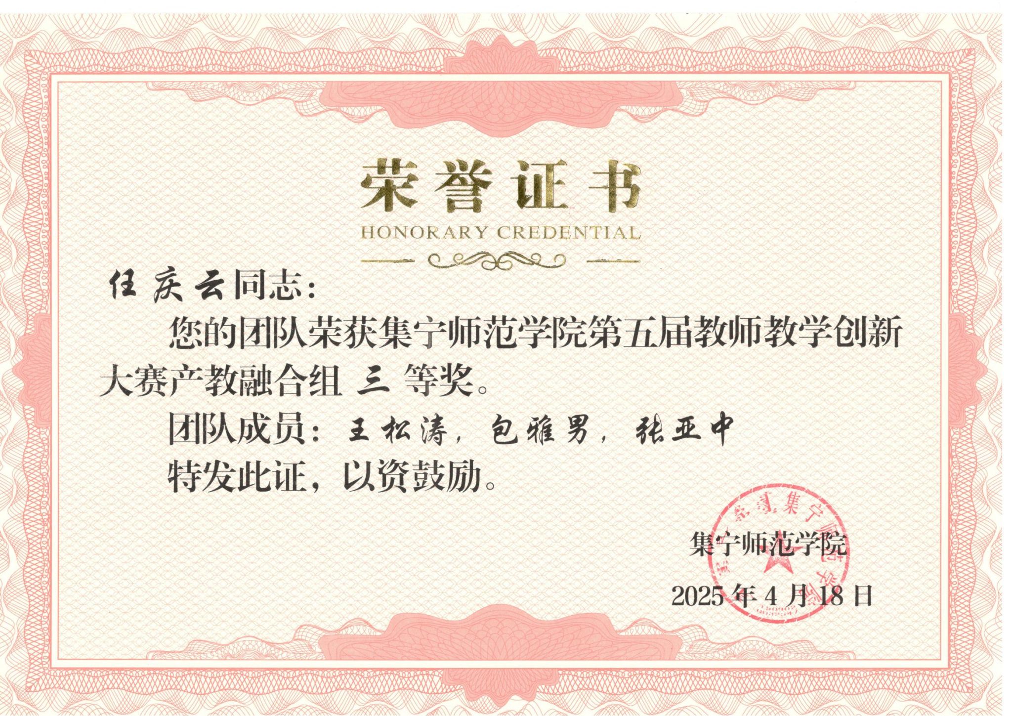 经过两轮评审,化学与化工学院任庆云老师团队获得产教融合组三等奖,李燕中老师获得副高组优秀奖,李欢老师获得课程思政组优秀奖。