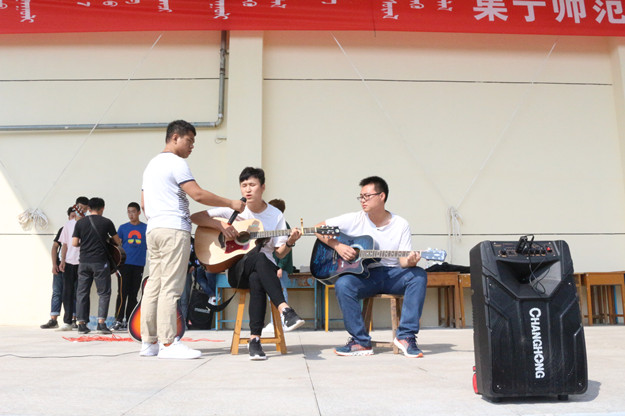 学生社团深入学校军训场地为新生表演节目,加油鼓劲儿