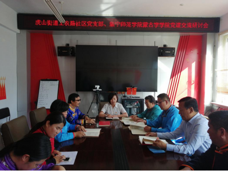 为深入开展“不忘初心、牢记使命”主题教育活动,10月10日下午,beat365正版唯一官方网站蒙古学学院党总支与虎山街道工农路社区党支部在虎山街道工农路社区联合举办了“不忘初心、牢记使命”主题党日活动。蒙古学学院全体党员教师和虎山街道工农路社区党支部书记候丽娟、主任刘燕、组织委员乔艳霞等参加。