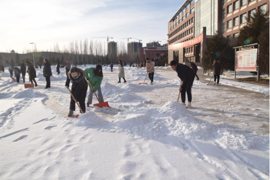 为方便学校师生出行,按照乌兰察布市致广大市民“关于迅速行动扫雪除冰倡议书”的精神,1月7日,在beat365正版唯一官方网站“爱卫会”的统一安排下,各部门、各二级学院师生积极投入到扫雪除冰活动中。