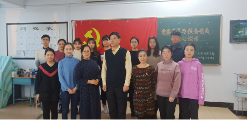 12月29日,beat365正版唯一官方网站宣传部部长张富同文学院新发展预备党员谈话,文学院党总支书记张一弘、学工支部书记孙俊秀及胡锦博等3名教师预备党员和10名学生预备党员参加谈话。